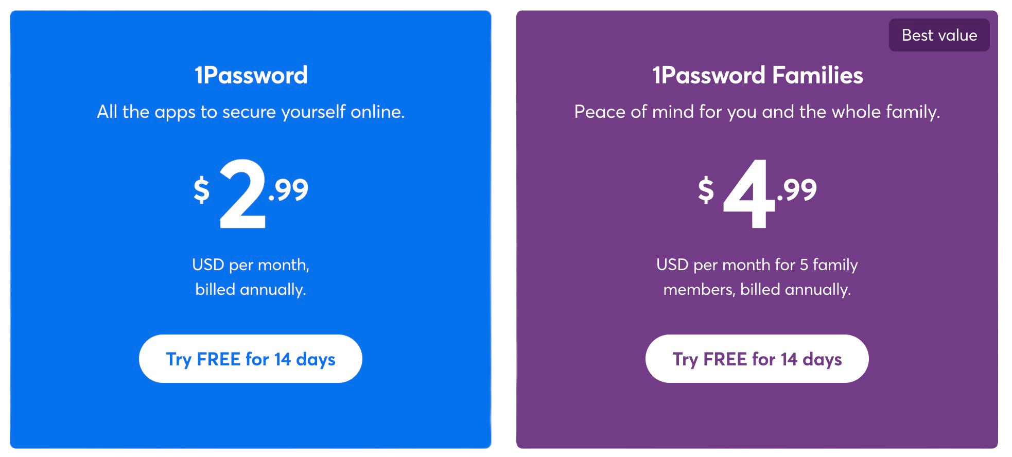However, using our affiliated link, you can get a 50% discount off a 1Password Personal Subscription, Family Subscription, or Business Subscription.