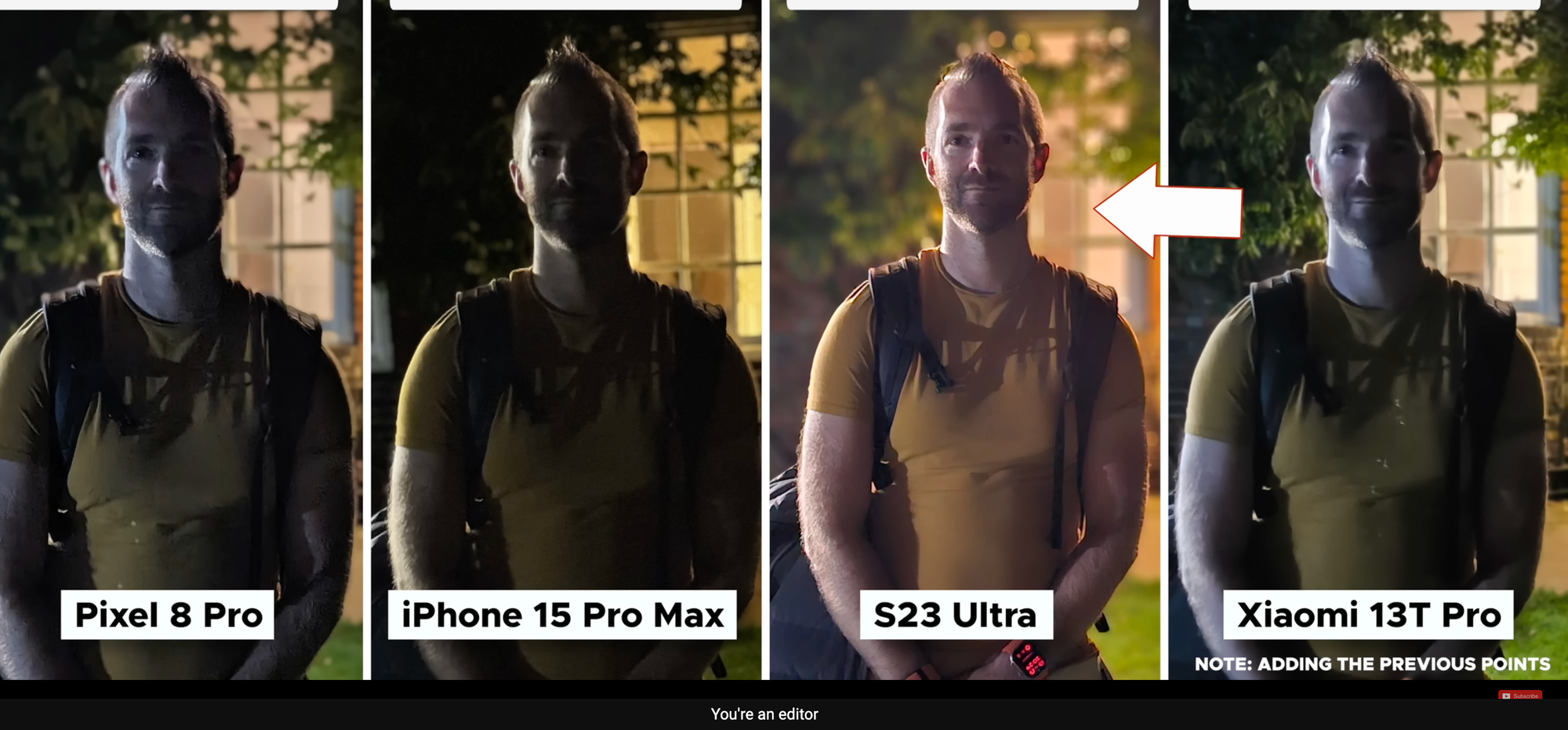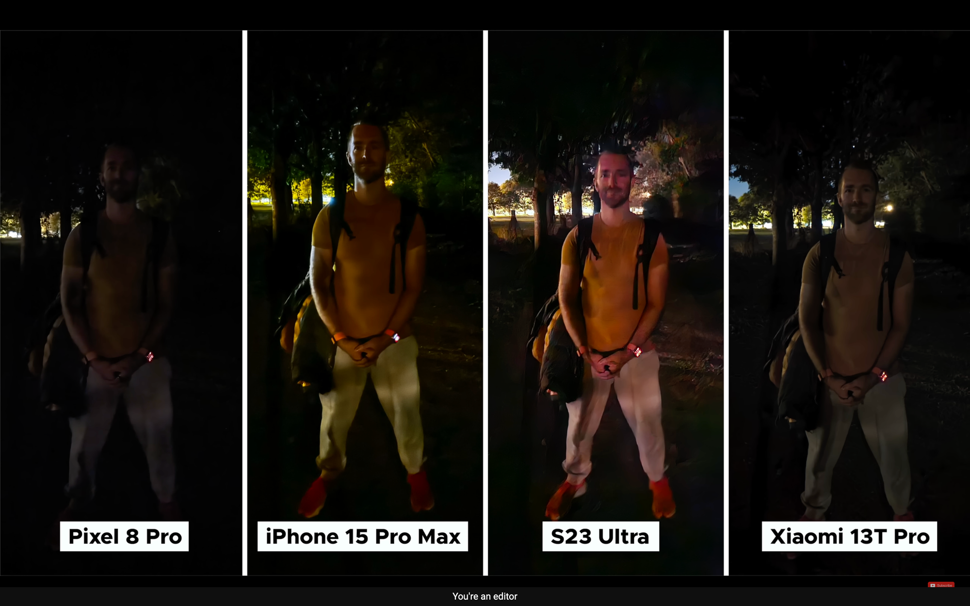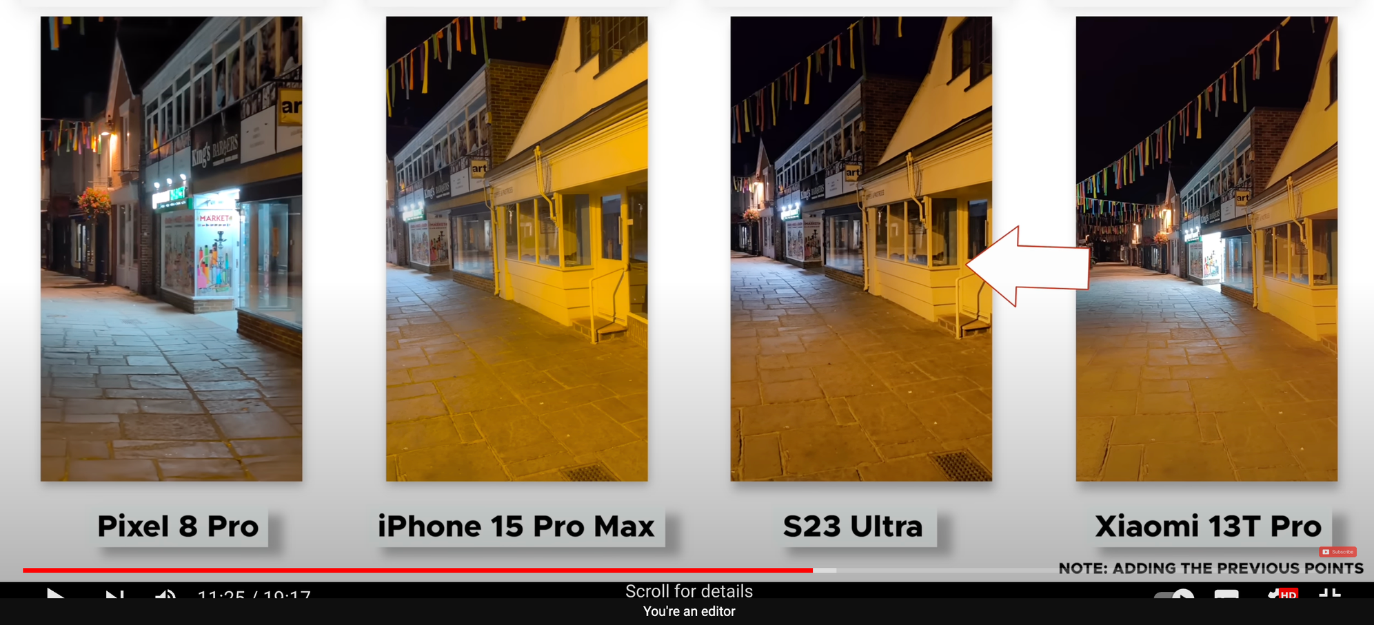 Next up is some video still images, and if you use an iPhone you might be thinking, ha, we’ve got this one… But actually, you’d be wrong. The Pixel 8 Pro, the Xiaomi 13T Pro, and the S23 Ultra all beat the iPhone in some of these tests…