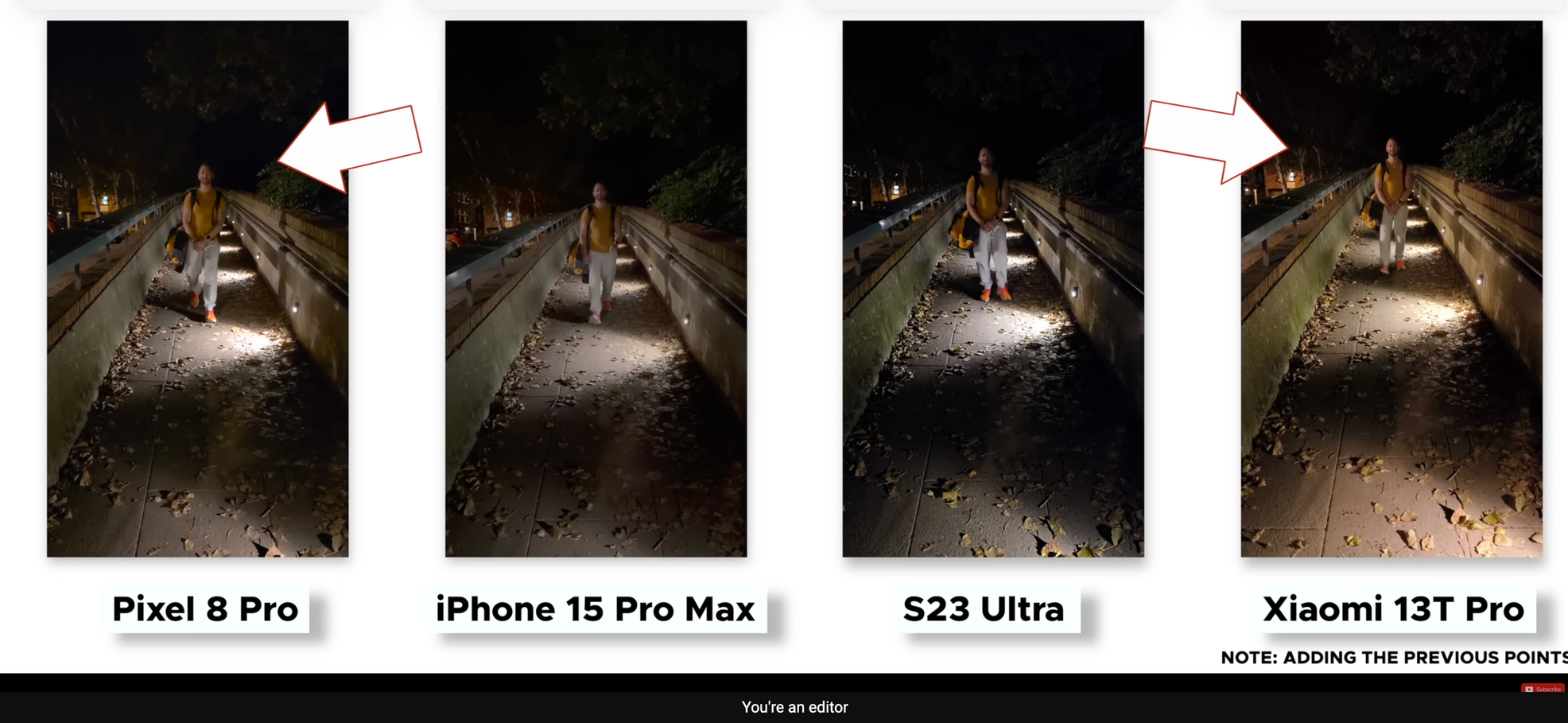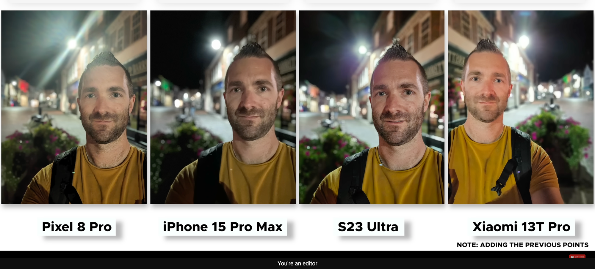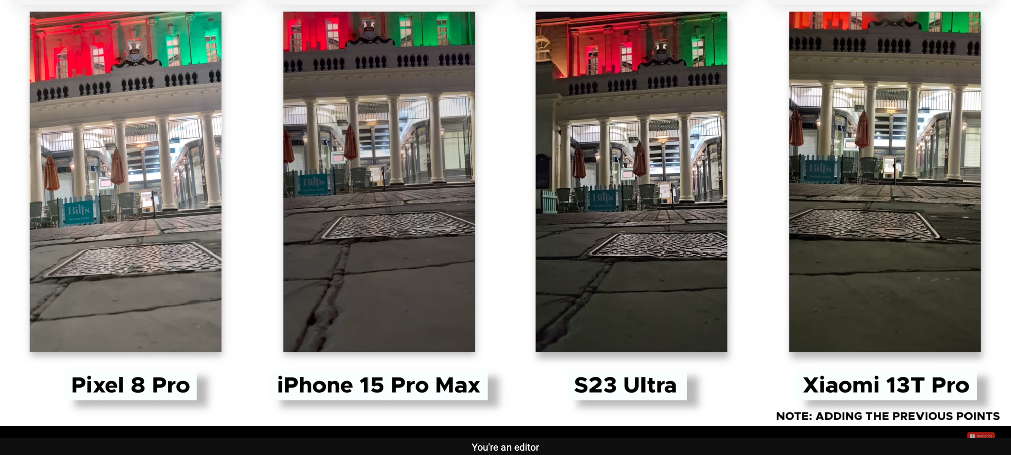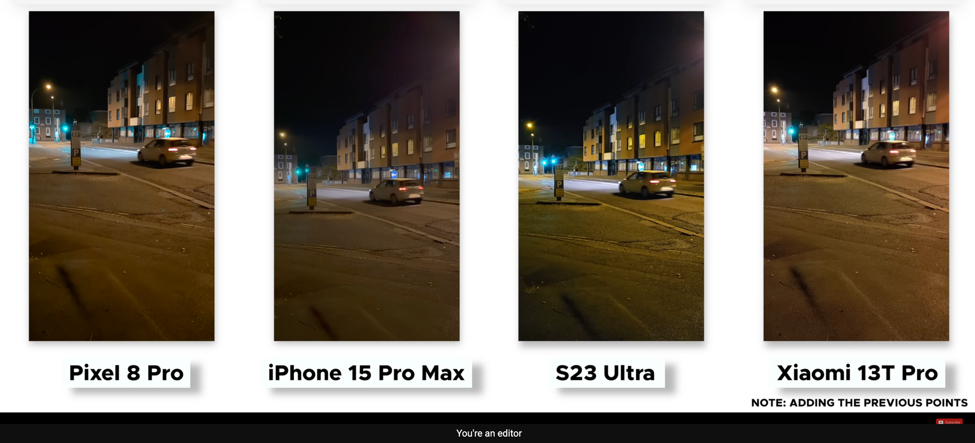 Next up is some video still images, and if you use an iPhone you might be thinking, ha, we’ve got this one… But actually, you’d be wrong. The Pixel 8 Pro, the Xiaomi 13T Pro, and the S23 Ultra all beat the iPhone in some of these tests…