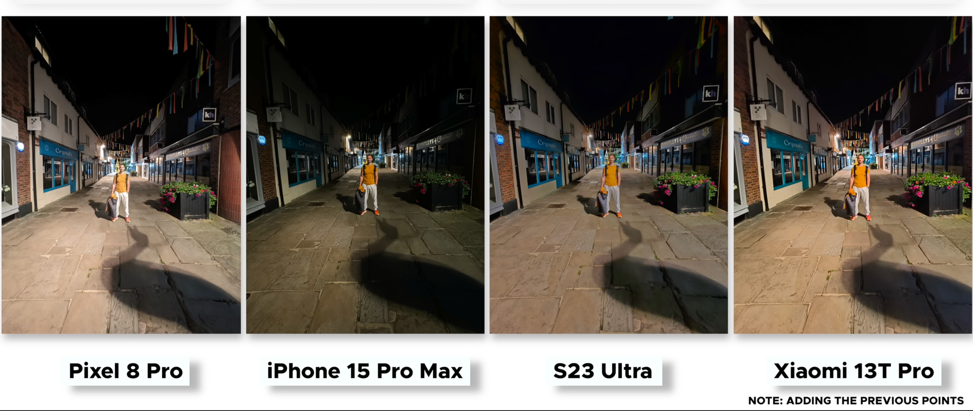 So, 4 Points to the Pixel 8 Pro, 3 points to the Xiaomi 13T Pro, then I think it’s going to have to be 2 points to the S23 Ultra and just 1 point to the iphone 15 Pro Max. As someone who has used an iPhone since, basically forever, I’m actually stunned at how badly it’s performing here… Especially since the 13T Pro is half the price of the 15 Pro Max. Crazy.