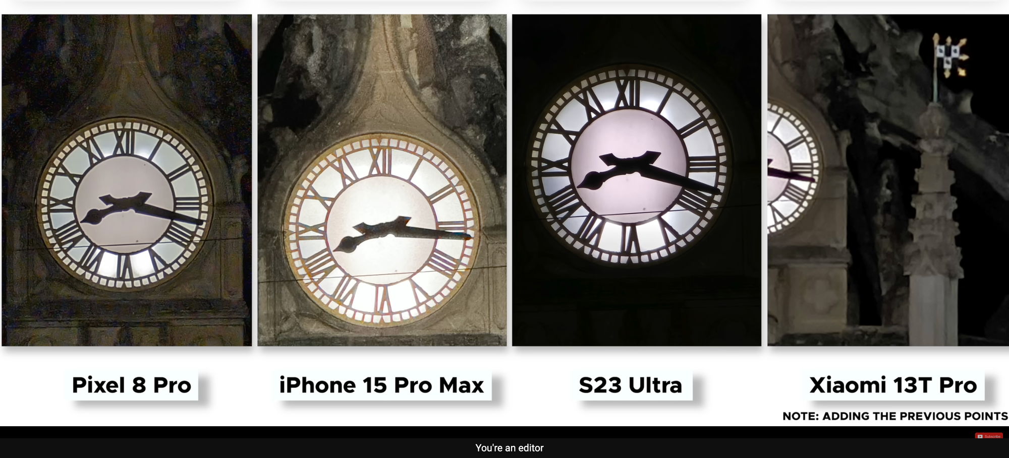 The Pixel 8 Pro coming a very close second which also has a 5x lens, though it did blow out the clock face, so just 3 points.