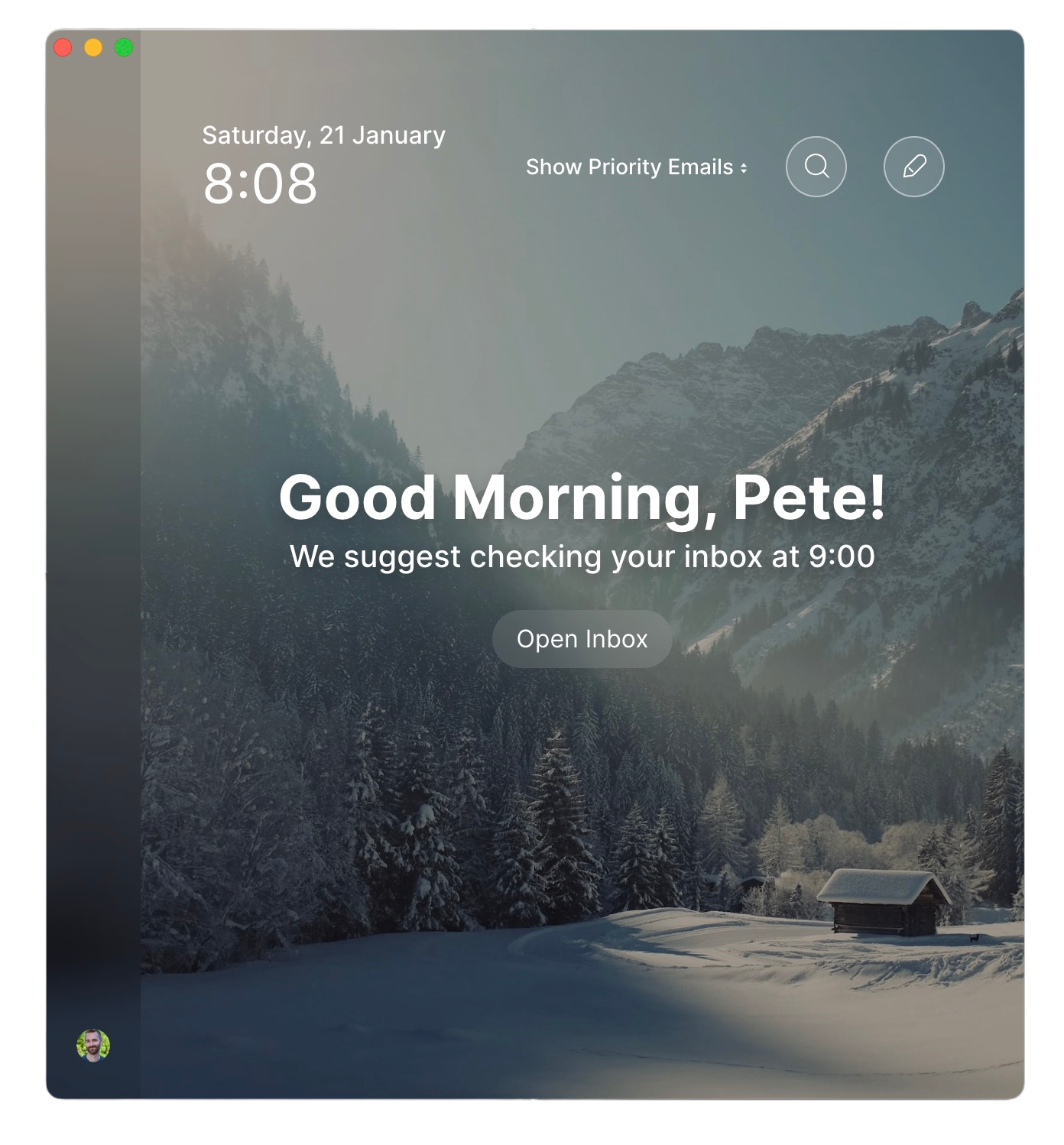 When I open up Spark in the morning, I'm greeted by a beautifully designed home screen, which I've set to only show me any email conversations I've marked as Priority.