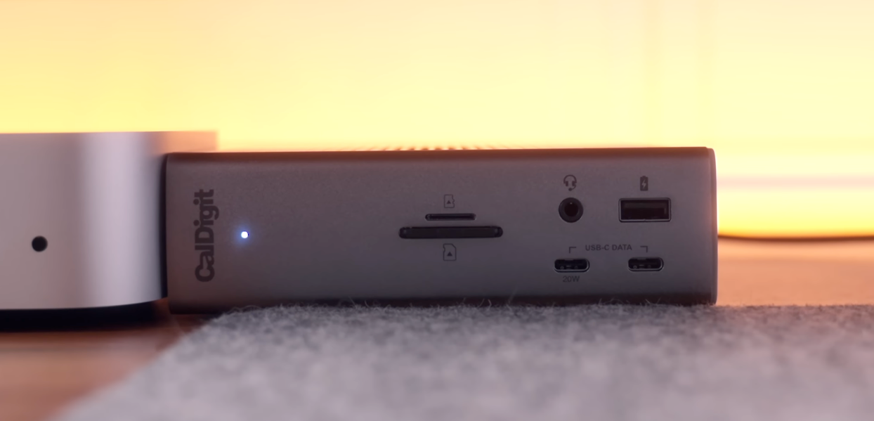 The Caldigit TS4 Dock expands the limited ports on the Mac Mini.